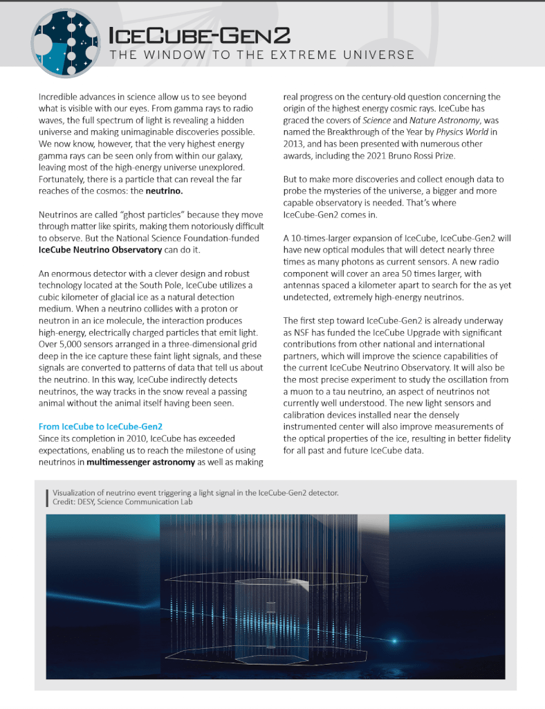 You can also contact the scientific team leading this project by writing to icecube-gen2@icecube.wisc.edu.